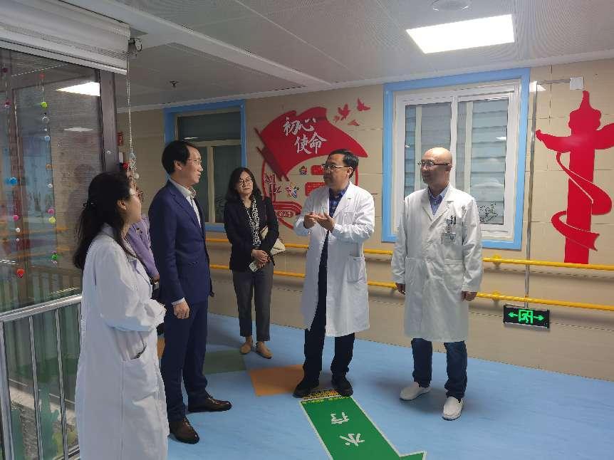 南京市社会儿童福利院副经理窦志飞对叶亮书记一行的到来表示热烈欢迎,并带领大家参观了物理治疗室、作业治疗师、感统训练室、水疗室等治疗工作室。叶书记一行不时驻足观看,仔细听取讲解,并饶有兴致地交流讨论。