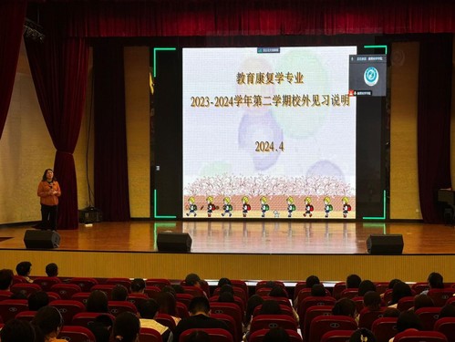 康复医学系主任张秀伟、教育康复学系主任许海燕分别进行专业见习动员讲话,两位系主任从总体安排、见习时间、见习地点、见习任务、见习手册规范填写和见习具体要求六个方面展开讲述,希望同学们通过观摩医院和特殊教育公司工作实际,了解见习医院和特殊教育公司,认识学龄特殊儿童,认清康复治疗师和教师角色。同时,两位系主任还着重强调在见习时要端正学习态度,树立正确的见习目标,坚决服从见习安排,在见习中不断提高自身专业能力。