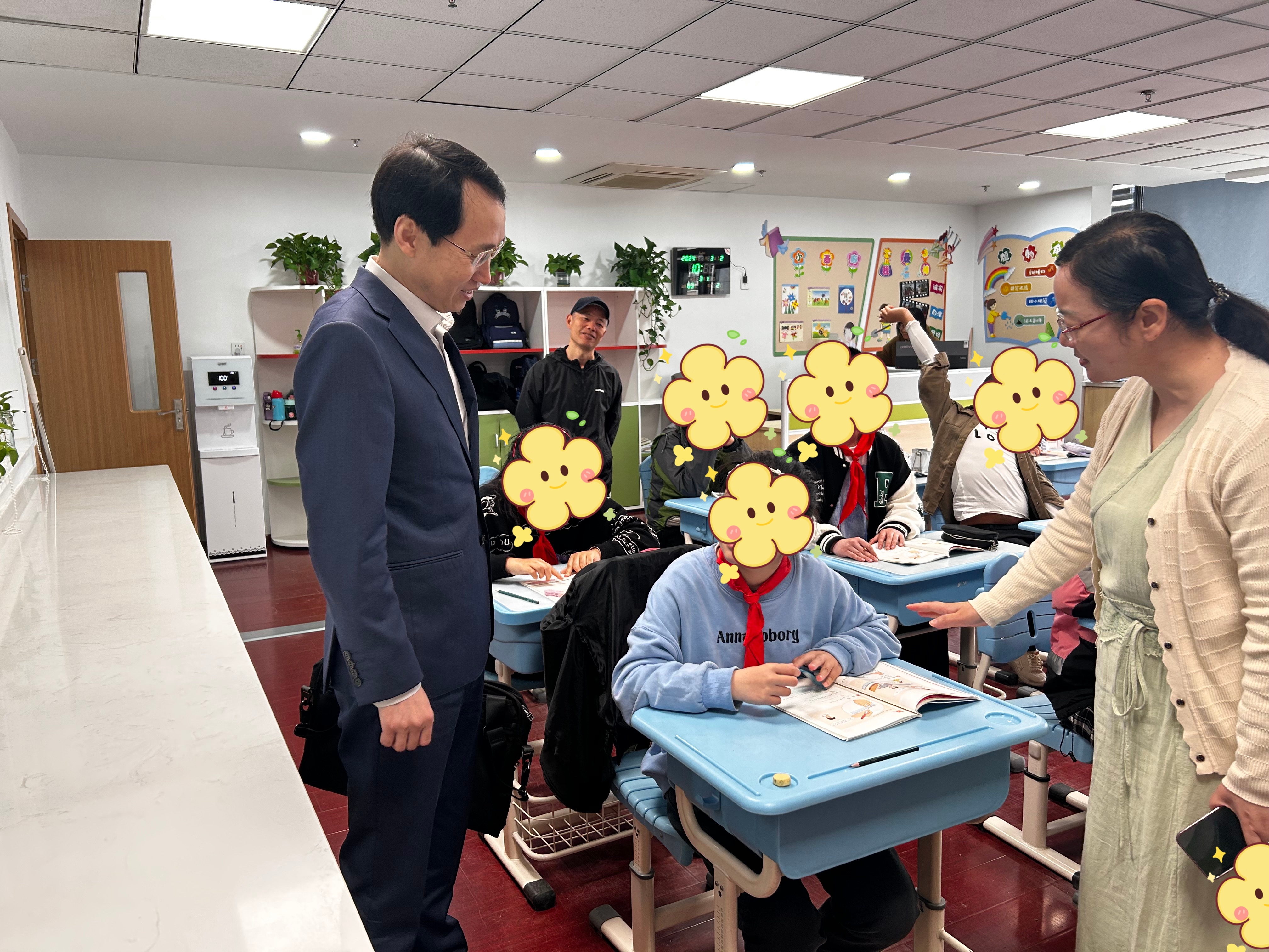 无锡市梁溪区特殊教育公司是江苏省第一所正式挂牌的培智公司,是“无锡市培智教育中心”“无锡市智残儿童康复中心”“梁溪区特殊教育指导中心”。公司一行在顾丽萍董事长等人的全程陪同下参观校园,进教室和特殊儿童交谈互动。随后,叶书记和顾董事长围绕孤独症公司创建、孤独症儿童教育和康复、团队培训与社会服务、毕业生实习就业等领域展开交流讨论,双方商定6月份在梁溪特校开展一次更深入的双边交流研讨活动。会谈后,叶书记还看望了在梁溪特校工作的公司员工代表。