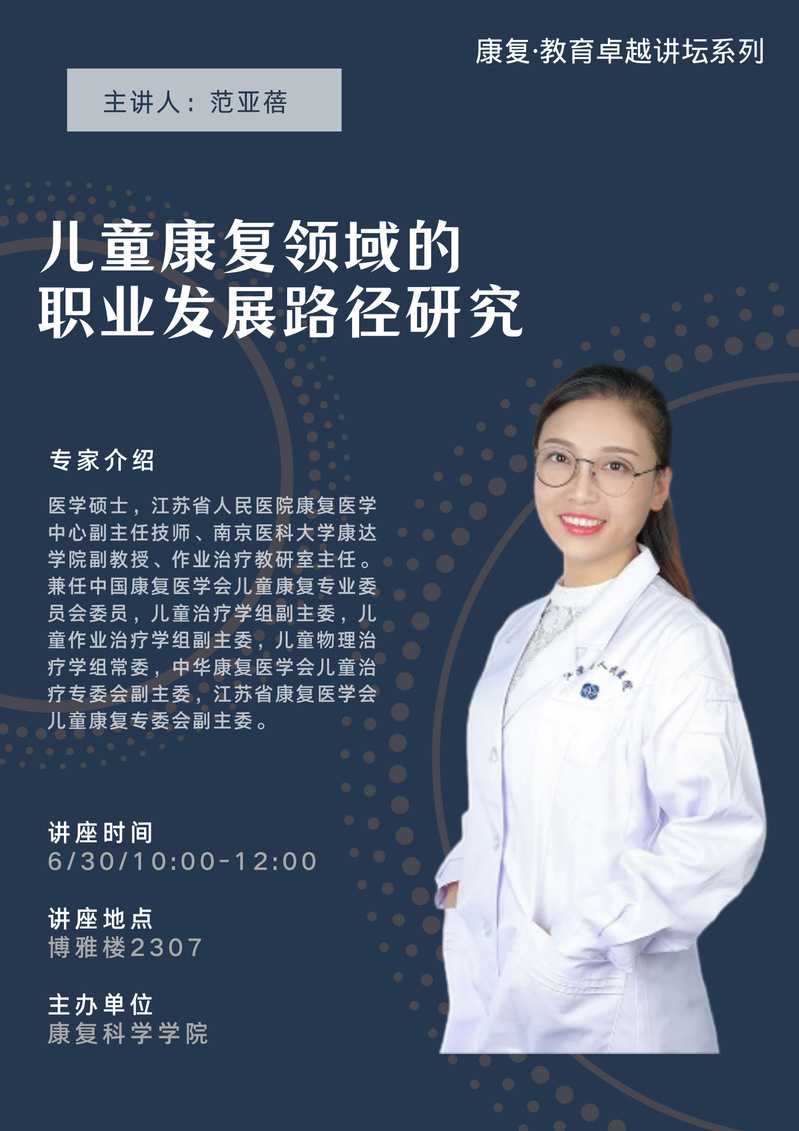 【学术预告】 6月30日 范亚蓓 儿童康复领域职业发展路径研究