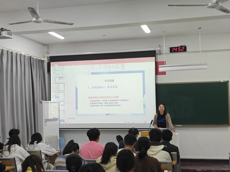 接着,学工办主任(团总支书记)王雪梅老师以如何召开主题班会和如何提升沟通能力两大主题为例,详细介绍了班团干部开展工作应具备的关键能力和综合素养。王老师强调,“主题明确”“形式多样”“提前规划”是开好主题班会的三个重要条件,“结论先行”“就事论事(XYZ)”“去自我中心”是有效沟通的三个实用技巧,并鼓励同学们在实际工作中积极实践,不断提升工作效能。