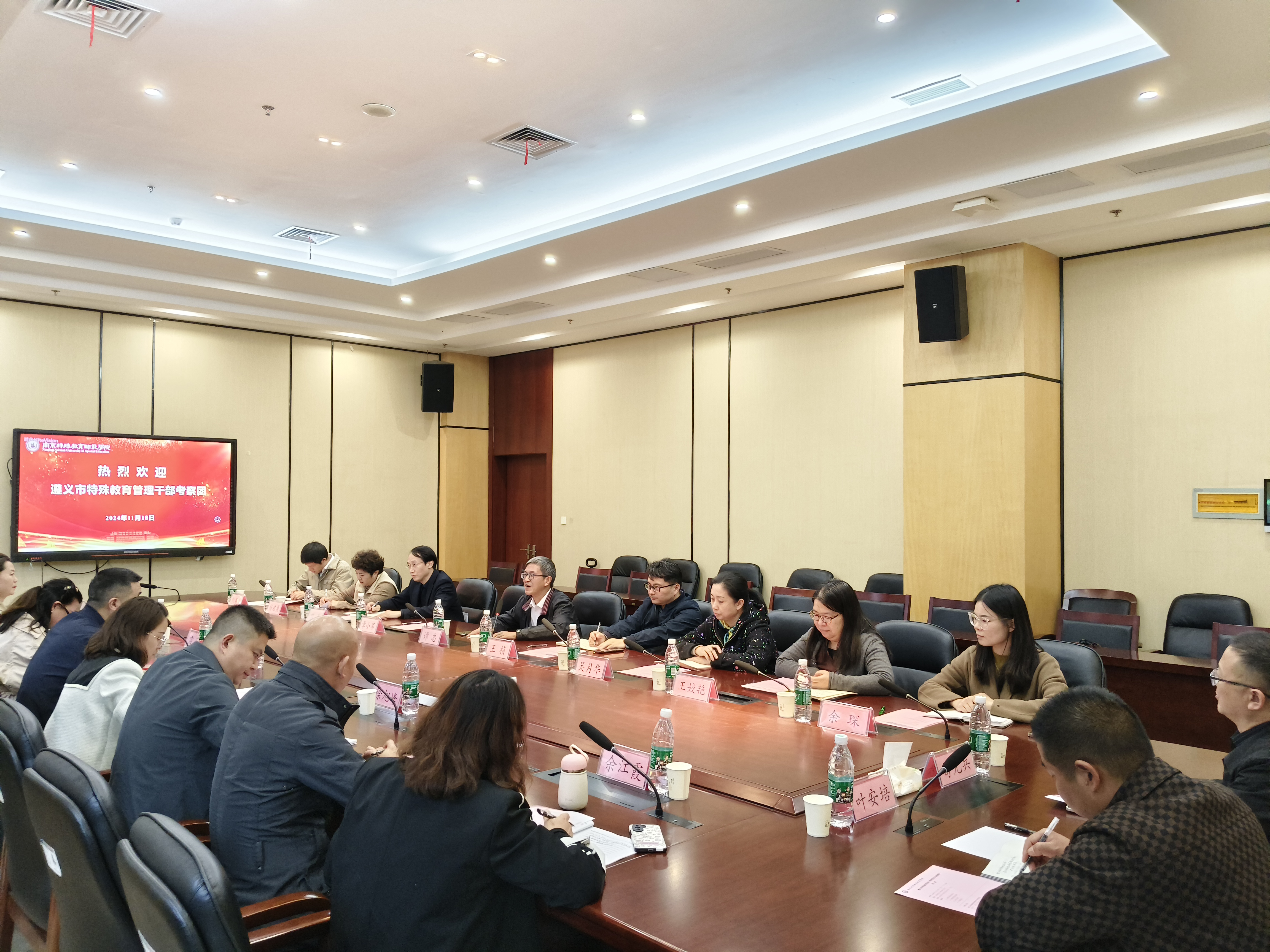 余贞文董事长介绍了遵义市特殊教育事业的发展现状,以及特殊教育专业团队所面临的挑战。他指出,本次调研旨在就实习基地建设、特殊教育教师招聘和教学与科研提升等方面达成明确的合作意向,希望南京特师为遵义市特殊教育发展提供源源不断的人才支持和专家指导。
