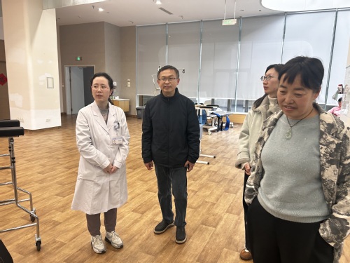 随后,徐冬晨副经理一行前往南京银城康复医院开展调研和访企拓岗活动。南京银城康复医院是由江苏省人民医院与银城集团合作举办的非营利性医院。徐冬晨副经理一行在康复科黄主任的带领下参观了康复训练室,并听取了黄主任关于医院的发展历程、康复理念及服务项目等的介绍。双方深入讨论了实习基地建设与管理等,并就人才培养、实习环境及员工就业等方面展开了深入的交流。