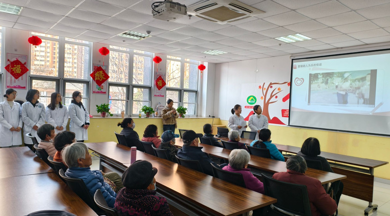 活动伊始支部党员精心策划了银龄健康宣讲。通过生动的影像资料,伴随耳熟能详的《学习雷锋好榜样》,老人们一起重温雷锋故事,高年级员工党员则结合医护工作者的使命,阐释新时代雷锋精神干一行爱一行的深刻内涵。随后,围绕老年人健康话题,志愿者同学详细讲解常见疾病预防知识以及规律作息、合理饮食的重要性,一套整齐划一的“拍手操”将活动气氛推向高潮针对常见养老骗局,如冒充亲友诈骗、“奇效”保健品推销等,防诈宣传小分队则详细讲解了防范技巧提升老人安全意识。宣讲最后精心设计了有奖竞赛环节,随着主持人抛出问题,老人们争相举手,现场气氛热烈既巩固了宣讲内容,又以寓教于乐的方式激发了老人的参与热情。