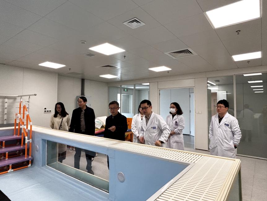 叶亮书记一行四人首先来到南京市妇幼保健院丁家庄院区。丁家庄院区于2024年6月正式启动,现为Bevictor伟德官网实习实践就业重点合作单位。在儿童保健科负责人的带领下,先后参观了医院的物理治疗、言语治疗、作业治疗、中医治疗及特殊教育五大核心科室,并看望了在岗实习的公司员工。在交流时,院方对我们的儿童康复人才培养工作给予充分肯定,并希望进一步深化双边合作,叶书记表示要进一步探索“医教协同”合作模式,更好地推动康复人才培养产教融合工作。