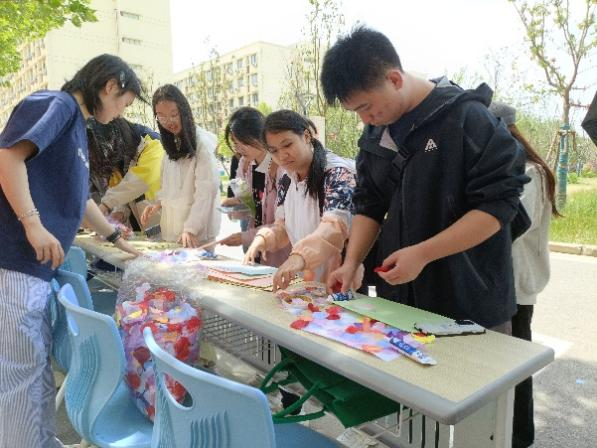 活动伊始,同学们根据个人喜好选择花瓣设计拼贴思路,五彩斑斓的花瓣在同学们的手中成为了独特的艺术素材。有的同学以单一色调花瓣为基础,凭借精巧的构思与细腻的手法,用简洁的色彩与线条勾勒简约之美;还有一些同学勇于突破常规,大胆运用红、黄、蓝、紫等多种色彩花瓣进行组合,创作出充满想象力与个性化的艺术作品。活动过程中,同学们全神贯注,将对自然的热爱与对艺术的追求倾注于每一个拼贴细节之中,逐步加深对大学精神的理解。