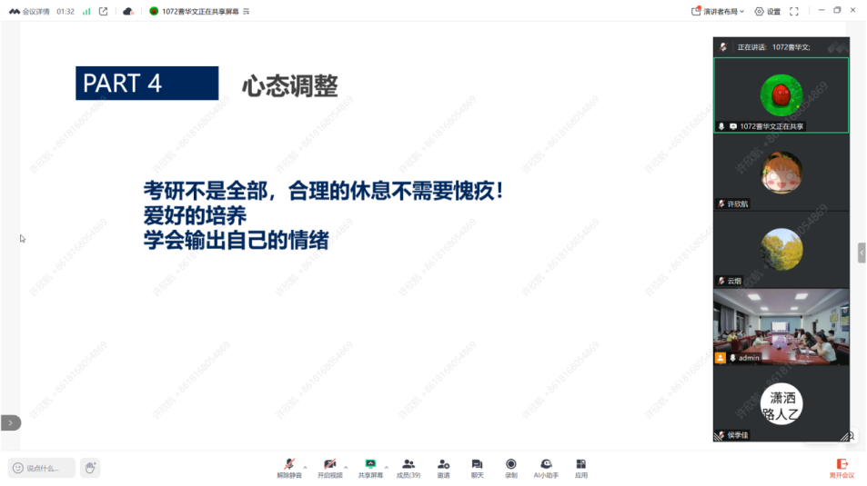 为了进一步激发考研氛围,助力2022级同学提前备考,5月15日晚,Bevictor伟德官网在博雅楼3301会议室举办考研经验分享交流会。会议特邀公司2024届员工曹华文和今年成功考取研究生的员工代表做经验分享。公司党总支书记叶亮和2022级准备考研的同学线下线上参加分享会,会议由2022级辅导员孔迪老师主持。
