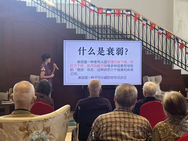 团队成员用通俗易懂的语言、贴近生活的案例,辅以插图、视频,由浅入深地向老年人及其家属讲解了衰弱的定义、表现、危害、预防方法,以及衰弱与正常衰老的区别。现场,团队成员还示范简单易学的“防衰护心”小技巧,指导老人建立合理饮食与生活习惯。生动直观的讲解,不仅让老人们听得津津有味,还激发了他们主动参与健康管理的意愿,有助于从源头降低共病风险。