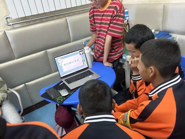 结合时代热点,团队还结合互联网进行了线上远程教学尝试,给同学们科普了人工智能的使用以及注意事项。课后一位叫多吉的同学对任课老员工志愿者老师说:“人工智能很强大,但是在如果不能保持自己思考做AI的主人,我们会变成奴隶。所以要用好AI、善用AI。”