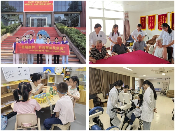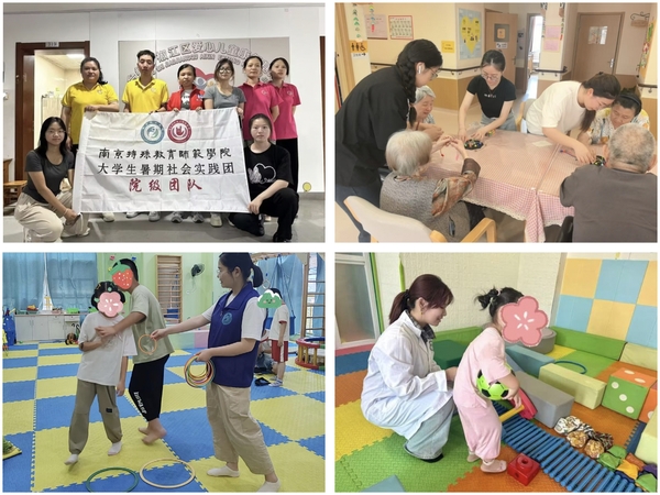 聚焦“一老一小”健康需求,团队们精准发力,提供专业服务。老年与成人康复领域,“心之翼”走进南京4个社区,开展双心健康科普与红歌疗愈;“青松康伴·银龄守护”深入7家养老机构,做老年衰弱筛查、推广乐韵健指操;“桑榆暖夕”在社区推广智慧康复仪器,为偏瘫、帕金森患者设计个性化方案;“心肺康复行”团队聚焦脑卒中患者,协助基层机构开展治疗,调研50余名患者后形成报告,直指资源不均、人才不足等问题,提出资源调配、校医联合培养等建议。中医康复创新领域,“康乐护航者”赴江苏省中医院(钟山院区),学习针灸、推拿等中医疗法及现代康复设备操作,探索“针灸+运动疗法”等中西融合方案,发现中医在疼痛缓解、言语障碍辅助等方面的显著效果。儿童康复领域,“愈苗成长营”在南京市儿童医院开展近1月临床实践,办趣味运动会;“朝阳康复”调研儿童康复家庭压力,助力构建“医疗+家庭”协同体系;“星语心愿行动组”在康宇中心用套圈、手工等游戏提升特殊儿童能力;“童声同行”在南京妇幼深耕听语障碍筛查与训练。基层与特殊儿童服务方面,“童心守护·陪伴成长”在扬州成长中心开展15天实践,以平视沟通等技巧破冰,总结趣味训练、分段教学等实用方法;“台光逐梦小队”在台州爱心机构开展7天服务,开设手语、黏土课,陪伴多课程助力特殊儿童能力提升。