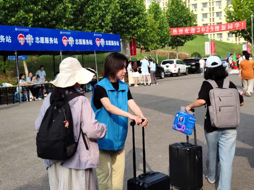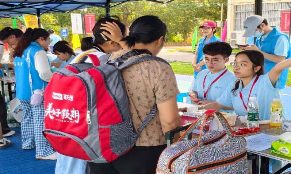 志愿者们始终活跃在迎新第一线,成为工作中不可或缺的中坚力量。从校门口高举指引牌迎接新生,到报到点协助核验材料、发放物资;从穿梭校园帮忙搬运大件行李,到宿舍区耐心引导入住流程——他们用热情与汗水生动诠释了“博小爱”的奉献精神。尽管天气炎热,但每一位志愿者始终笑容洋溢、积极主动,让新生从踏入校门的第一刻起就感受到康复公司大家庭的温暖与团结。
